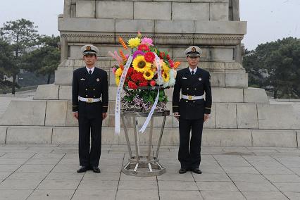 41日下午,我們?cè)谙到虇T常路賓帶領(lǐng)下,來到位于錦州的遼沈戰(zhàn)役紀(jì)念館,向英雄紀(jì)念碑敬獻(xiàn)花籃。儀式在雄壯激昂的《獻(xiàn)花曲》中拉開序幕,兩名禮兵邁著鏗鏘有力的禮步將花籃緩緩送到紀(jì)念塔正前方。花籃挽聯(lián)上寫道:“功業(yè)常齊天地永,紅旗自由后人擎;中國(guó)人民解放軍海軍工程大學(xué)敬挽。”在主持人的組織下,我們統(tǒng)一脫帽,向烈士紀(jì)念塔默哀一分鐘。并重溫了入伍宣誓。最后,教員對(duì)我們說道:“同志們,歷史證明,強(qiáng)國(guó)必先強(qiáng)軍。今天的你們是以共和國(guó)未來海軍軍官的身份來到此地,更應(yīng)當(dāng)學(xué)習(xí)先烈們的優(yōu)秀品質(zhì),不斷磨礪自己,努力提升自己,在強(qiáng)軍興軍的征程上奉獻(xiàn)自己的青春熱血!”