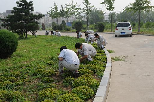 會后,一場黨員帶頭、員工共同參與的集體除草活動熱火朝天地開展起來。大家有的用手拔、用的用鐮刀割、有的用袋裝、用的用車推,忙的不亦樂乎??煺邘椭?,年輕者幫助年長者,大家一邊勞動,一邊互相問候,其樂融融。表面的雜草連根拔起,死角區(qū)域進行了二次清除。烈日炎炎下,盡管很多人的臉上流下了晶瑩的汗滴,但他們依然在繼續(xù),沒有停歇。功夫不負有心人,經(jīng)過2個小時的辛勤勞動,責任區(qū)域內(nèi)的雜草、雜物被徹底清除。當大家回望整潔有序的草坪時,心中無比喜悅。