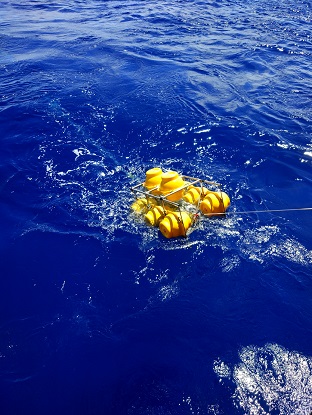 在船上的54天里,我們布放了14套潛標(biāo),回收了11套潛標(biāo),累計(jì)布放803件,回收了294件,其中也包括我們所生產(chǎn)的ADCP。雖然我主要負(fù)責(zé)我們的設(shè)備,但也負(fù)責(zé)了所有的潛標(biāo)布放,而在布放的過程中,最常見的天氣就是高溫炎熱,因?yàn)榇耙恢痹诔嗟栏浇鳂I(yè),所以船甲板溫度在40度以上,我們常常頂著毒辣的太陽在甲板上布放,也讓布放增加了難度,而還有個(gè)自然因素就是以迅雷不及掩耳之勢(shì)襲來的暴雨,我們經(jīng)常在暴雨中連續(xù)作業(yè),全身都濕透了,也只能頂著暴雨堅(jiān)守戰(zhàn)地。而值得一提的是當(dāng)大風(fēng)以20m/s速度襲來時(shí),浪花直接拍到了6層駕駛室的玻璃上,仿佛將要把我們吞沒,此時(shí)看著浩瀚無邊的海洋,一道道波浪不斷涌來,撞擊在船體上,發(fā)出天崩地裂的吼聲,噴濺著雪白的泡沫。是那樣的壯觀。當(dāng)一切都回歸平靜的時(shí)候,又是那樣的云淡風(fēng)輕。